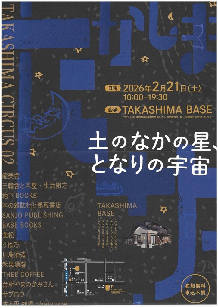 - 開催場所 TAKASHIMA BASE 高島市新旭町旭870-7