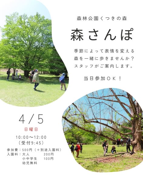 くつきの森のスタッフが森をご案内する「森さんぽ」当日参加もOKです!
