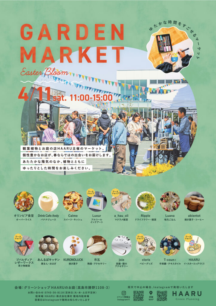 GARDEN MARKETは「花」「植物」「ガーデン」「自然」にまつわる出展者さまと開催する、HAARUが主催する小さなマーケットです。